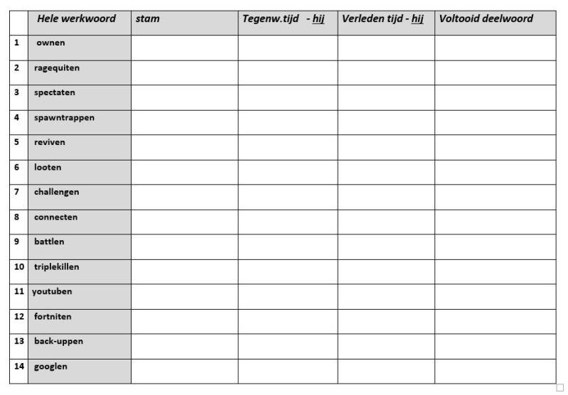 Al deze nieuwe woorden moeten ook worden vervoegd. Dit bleek een perfecte oefening voor de werkwoordspelling. Dit is dan wel indirect afgeleid vanuit ICT, maar de leerlingen waren bijzonder fanatiek in het maken van deze oefening. Zie afbeelding 1