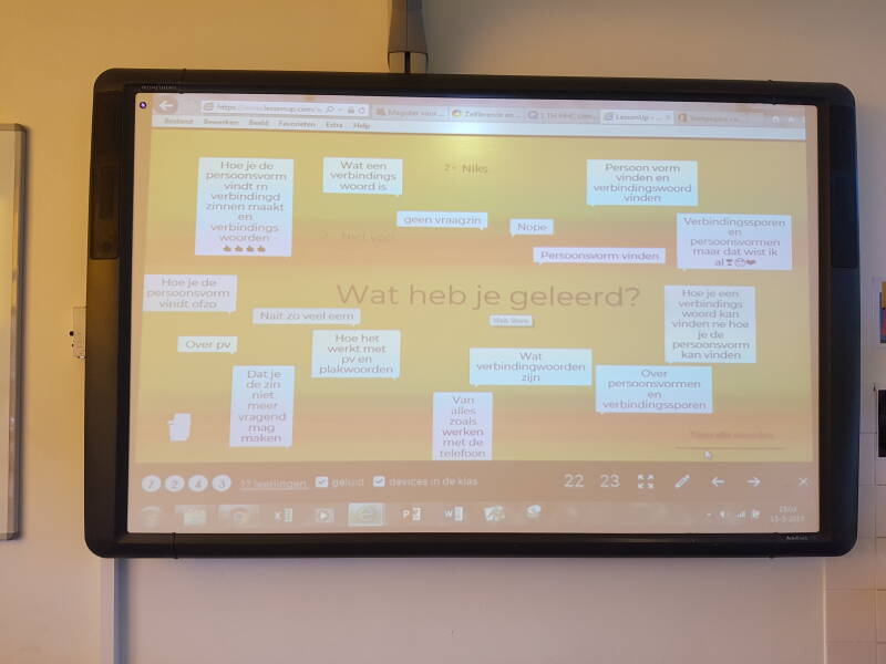 Deze opmerkingen komen in beeld terwijl ze omgedraaid zijn. Het geeft een mooi beeld van de leerlingen: Hebben ze het doel van de les bereikt of valt er nog iets te leren.